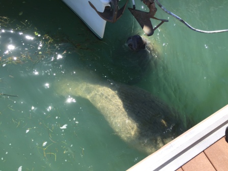 Not wanting to end our very short bike ride, we rode down to Faro Blanco marina again to see if any of our Looper friends were back on their boats. This time we did find Tom and Julie Van Hale (“Sum Escape”) on their boat; we missed them on our last trip there. We spent some time visiting them and getting caught up and disusing future travel plans in the Bahamas. We also got to see a pair of manatee in the water by their boat, and meet a few other non-looper transients in the marina.