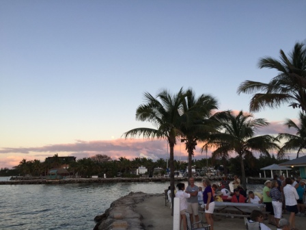 In the afternoon, we attended the Sunset Celebration – a gathering of Loopers at Banana Bay Resort & Marina about 1 mile north of MYC. The event was well coordinated by Pat & George Hospodar (“Reflection”), and was assisted by other Loopers staying at that marina. Although not an AGLCA planned event, there were two sponsors who provided beer, wine and soda and sponsored the music; a local band (“Four Sheets to the Wind”) that is well known throughout the keys and who were pretty good. Everyone brought a dish to share – so it was like one big pot luck dinner – Looper style.