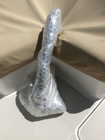 After lunch Mark started a project to replace the locking mechanism on our freezer, while Denise did all the prep work for our dinner. This “simple” project took over 3 hours because to get to the freezer mechanism we had to remove a piece of starboard that is above the unit. To further complicate this, the freezer is located in the small storage area underneath the helm seats, and is not easy for Mark to maneuver. So working with Denise who could crawl up into the smaller space, and handing her the tools (while providing the usual spousal instruction) we removed everything, swapped out the broken lock, and then put it all back together.
