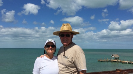 In the evening the four of us went to dinner at Sunset Grille – a restaurant that overlooks the 7-mile bridge and gave us a spectacular sunset. This place had been suggested to us as a “must see” place to go to and we understand why. It is the quintessential Tiki Bar & Restaurant. There is dining on an indoor verandah, or outside near the swimming pool under umbrella tables. There are docks where small boats can boat-in, tie up, and get a bite to eat. It is a fun place with nightly entertainment; we had a solo- guitarist. The food was pretty good and we had a lot of fun getting to know Jeff & Carol better.
