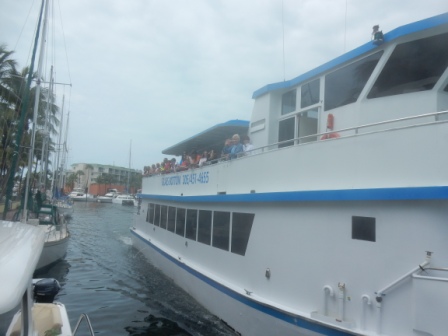 Key Largo Princess II passes by our Boat – Cousin and family aboard on the top deck on the way out to reef