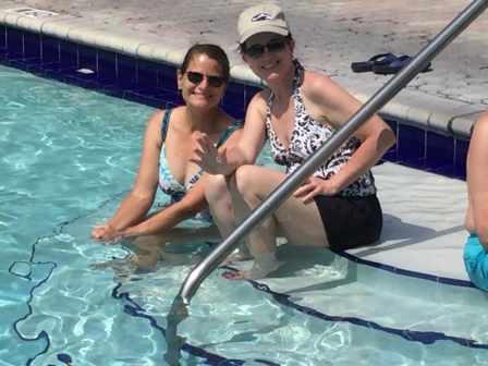 In the afternoon, Pam and Elaine (Mark’s sister and mother) arrived. Pam is on spring break this week and Elaine wanted to go to Miami, so Pam agreed to drive her there and then down to visit with us for a few days. Along the way they stopped in their old neighborhood of Miami Shores and also to visit Ray’s gravesite (Mark’s dad).