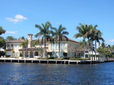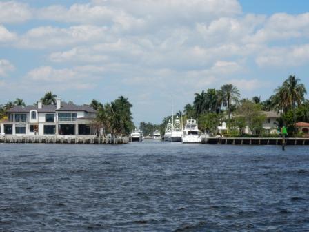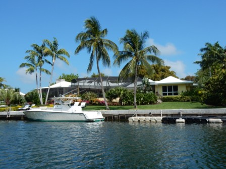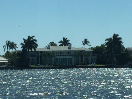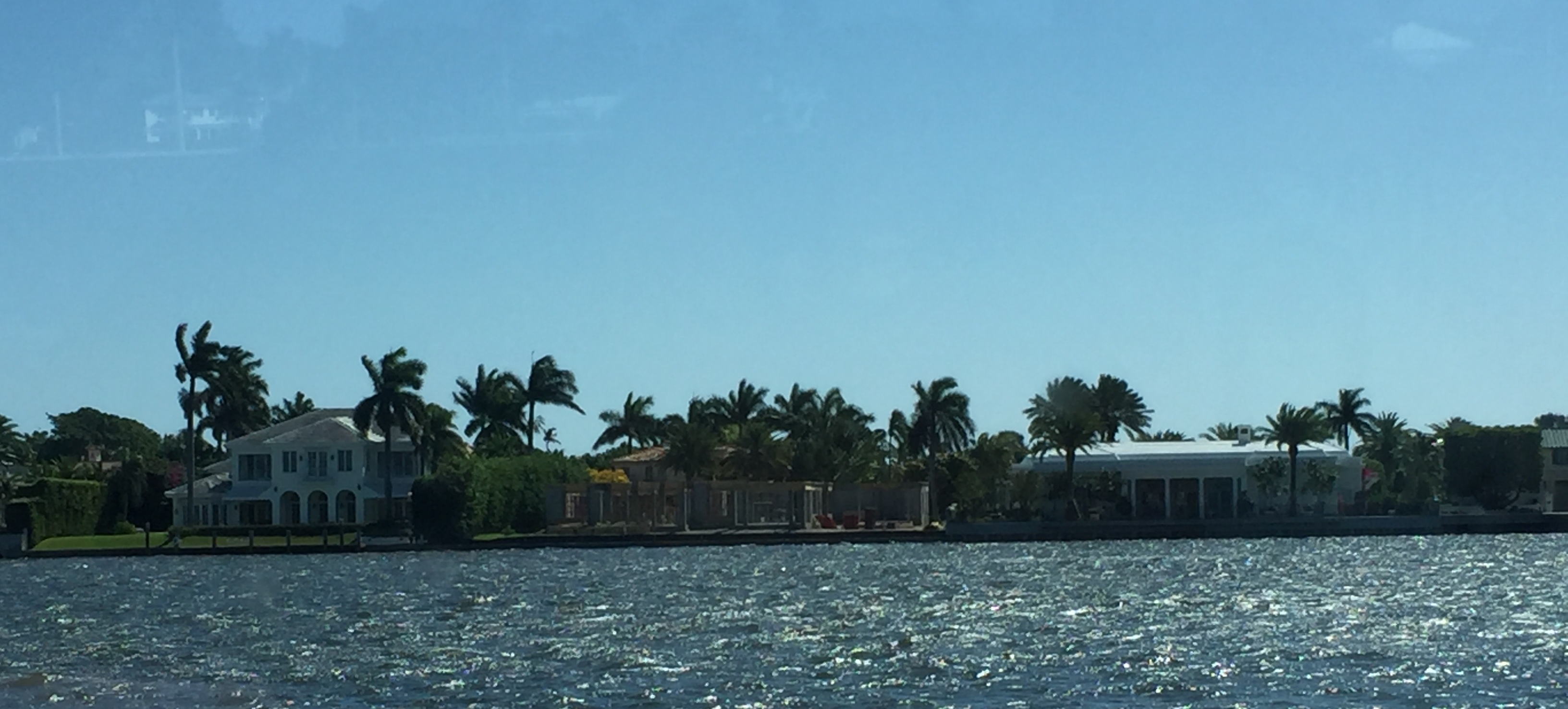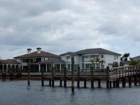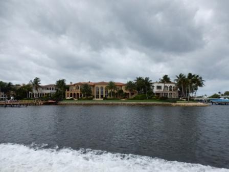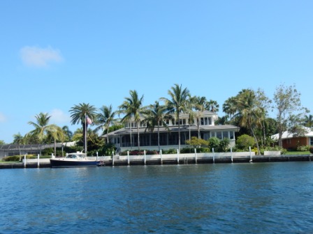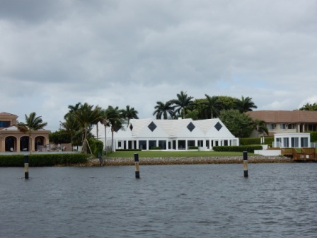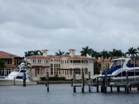 Not wanting to leave, we procrastinated as late as possible, but finally got the boat underway and headed north, passing more beautiful homes through Ft. Lauderdale, Lighthouse Point, Hillsboro Beach and Boca Raton. When the homes were not big, the boats in front of them were, or in some cases both were huge. Here are some of the small shacks we saw along the way: