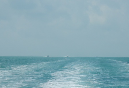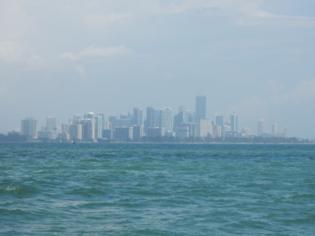We had been in communication with our friends on “Sassified” and “Endoxi”, who left Islamorada earlier in the morning. Once they cleared the Card Sound Bridge they called us and we pulled up our anchor in time to rendezvous on the ICW with them. Together the three of us cruised through Biscayne Bay and into Miami. We were barely able to see the “Stiltsville” houses off the coast of Key Biscayne as it was quite hazy with salt in the air, and the wind was really blowing strong now.