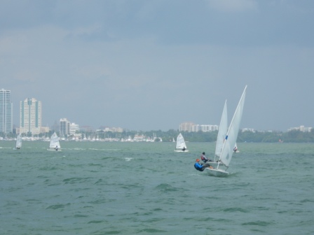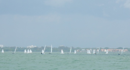 Coming into the Lake Worth area, the boat traffic had picked up considerably, as had the wind which contributed to the choppy waters. We were glad we did not stay at the original marina as it was right off the ICW and we would have been very exposed to the chop. It would have been another “Grand Haven” experience and we were glad we had chosen differently. We did however see a group of young sailors in an Optimist Pram regatta: