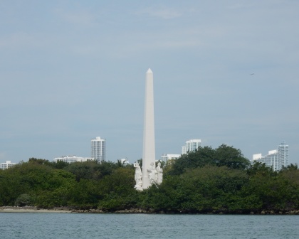 We rounded the corner through Government Cut and into the Meloy Channel, and went under the MacArthur Causeway. We passed between Miami Beach and Star Island, location of mansions and homes for some known celebrities (Gloria Estefan) and CEOs (Lennar Homes). We also passed the Flagler Memorial Island (what Mark and his dad would call Monument Island when they would fish the Biscayne Bay together.