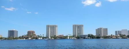 We left Delray Beach marina at 9:05 to time the Atlantic Avenue bridge opening at 9:15, and wanting to get an early start. The winds were forecasted to be strong and we knew we had to cross Lake Worth later in our travels, and didn’t want to face rough water when doing so. We also had to consider the restricted bridge openings for two other bridges, one of which we discovered had a 15’ clearance and we didn’t need to wait for its opening. We barely squeaked by, requiring 14.5 feet; it was close but prevented us from having to wait over 20 minutes and unnecessarily burn fuel. We were grateful for our low clearance as we did not require any further openings.