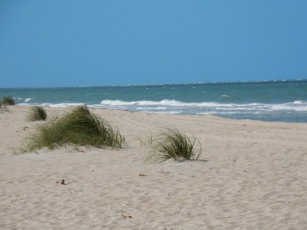 We left Dan for a walk to the beach and found that it was mostly deserted. There were a few other people in the water, but for the most part it was like having our own private island. We walked along the shore for about half a mile, picking up seashells when the still thunderous surf allowed.