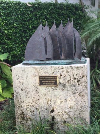 As we entered the Dinner Key channel to make our way to the Coral Reef Yacht club in Coconut Grove, we found ourselves in the middle of lots of Optimist Prams whose young sailors were enjoying the blustery wind. There was nowhere for us to go as it is too shallow outside the channel and their tack forced them across us. It was a harrowing few minutes, but Mark handled our boat well and we made it through without incident. Likewise, he docked Island Office on the end of the dock with the help of the dockhands at the yacht club. Meanwhile our friends continued on to Grove Isle where they had reservations in slips there.