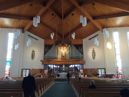 Sunday (4/10) – Old Port Cove Marina, North Palm Beach – We got up in time to make our 8:30 am appointment with Ed, who shuttled us to “St. Paul of the Cross” for the 9:00 am mass. This is a lovely church and is one of the “Doors of Mercy” churches we have been to since the start of the “Year of Mercy” announced by Pope Francis. The church was less than 3 miles from the marina, so we arrived quite early and had a chance to take a few pictures: