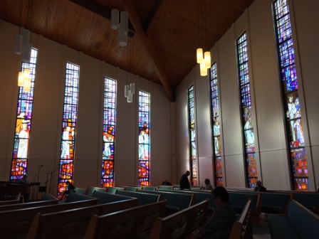 Sunday (4/3) – Miami, FL – We started off the day by going to another new church St. Hugh’s in Coconut Grove. As we expected rain and didn’t want to get wet along the way, we got an Uber taxi to take us there. But the weather cleared up while we were in church, so we walked the 1.2 miles back to the yacht club, passing shops, parks and restaurants “the Grove” is known for. Here are some pictures of St. Hugh’s: