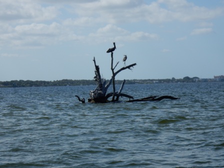 Wednesday (4/20) – Harbortown Marina – Merritt Island, FL – At an anchorage we have a tendency to go to bed early and last night was pretty much on par. The downside is we wake up really early. For Denise it was with the birds (literally) who started the cacophony in the wee hours and continued to get louder until the sun came up. The cool thing was when they all came down out of the casuarina (aka Australian pine) trees and went down to the water to feed.