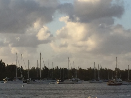 Although the boat swung a little during the night, it was mostly due to the current as there was little wind. The water was very calm in the morning and if not for the birds we would have said peaceful. Not wanting to disturb nature, Denise resisted turning on the generator so she could make coffee. However, once Mark was up, the first sailboat pulled out, and the others were visible in their cockpit, she turned it on. Enjoying that first cup was made even more enjoyable by watching the dolphins frolicking in the water nearby. It just doesn’t get any better than this!