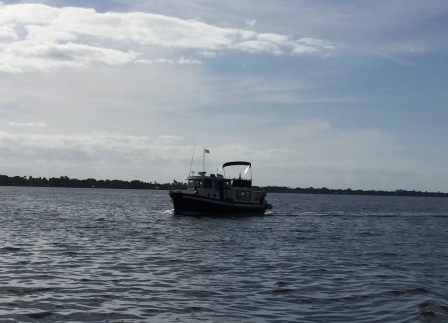 We then cruised north in the ICW encountering several boaters along the way. Some were boats we had passed the day before, including a few sailboats. Eventually we came upon some Loopers on a Nordic Tug called “Lee Loo”. We had seen and heard of this boat, but had never met them. We chatted for a bit on the VHF and wished them well on their journey; they are from Illinois and have a long way to go before they cross their wake.