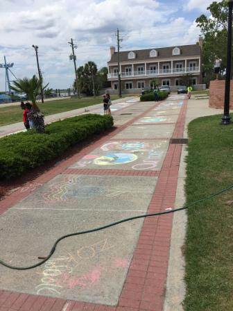 After we took on fuel, completed a pump out and secured our slip, we used the marina’s loaner bicycles to go to the farmers market nearby. It just so happens that they were having a Chalk Art Festival and we got to see some pretty cool pictures drawn by mostly young people. We also used the bikes to do a reconnaissance about the location of the Catholic Church, which was a little over a mile from the marina. We later used those same bikes to ride to church, and on the way back to the boat, grab a pizza at “Art of Pizza’ for dinner. It was good and we enjoyed having some leftovers to take with us.