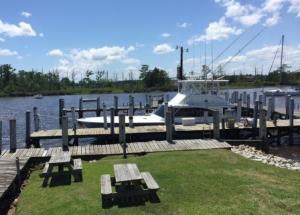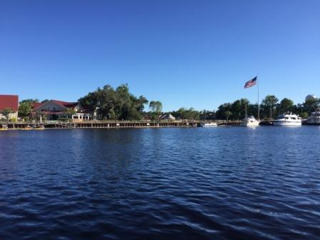 Eventually, we pulled into Barefoot Marina on the western side of the ICW. Since we were staying a full week, “Jimmy” the dockmaster put us on an inside slip. This was a welcome relief as this marina sits right on the ICW and the outside docks can be very rocky. So he located us right next to his own boat, which coincidentally is named “Satellite Office”.