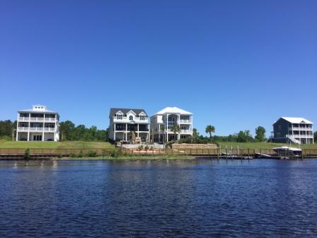After topping off the tank we continued north along the canal-like confines of the ICW. Here were found even more developed homes that lined the bank of the western shore. There were homes along the eastern shore as well, but much of this area is commercially developed. We were on the lookout for the cable car that carries golfers from the eastern side of the ICW to the western side, but we were sadly disappointed to see it was not operating. We later learned that the course is closed and the whole area is being re-developed.