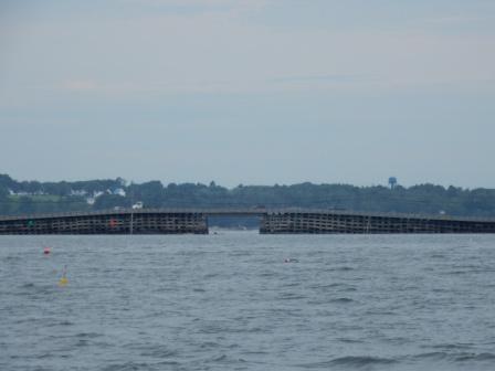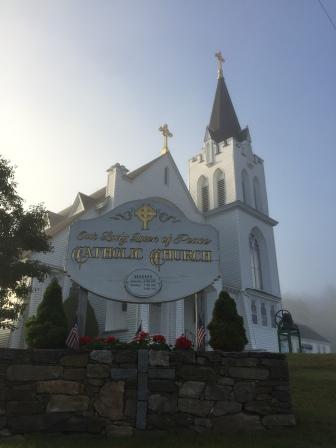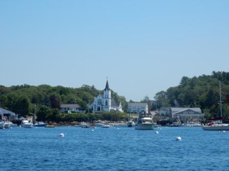 Once back on the boat, there was time for a quick breakfast and showers, then we walked back to the eastern shore for 9:00 mass at Our Lady Queen of Peace, this time taking the footbridge shortcut and not the perimeter roads around the harbor. On Saturday the church had held a rummage sale to benefit the school. However, they still had quite a bit of merchandise left over and announced all things were half priced. Still on our quest to find a pot that could hold 2 lobsters and fit on our small boat burner, we figured we should check out the sale. While they had no true “lobster pot”, we were able to pick up an old Revere-ware pot that would work and we were ecstatic that it was only $2.50. When we went to pay, the woman mentioned everything was half-priced so it was only going to be $1.25. There was no way we could do that and handed the women $2.50 – thanking her for the great bargain and feeling like we had accomplished a mission.