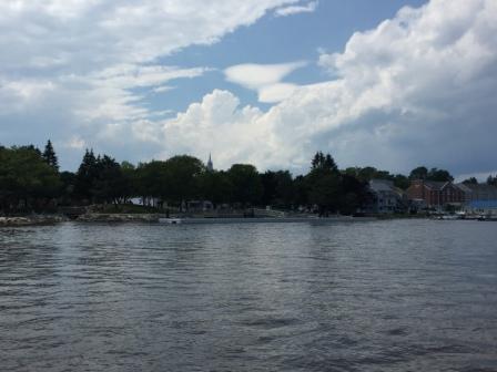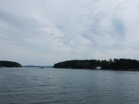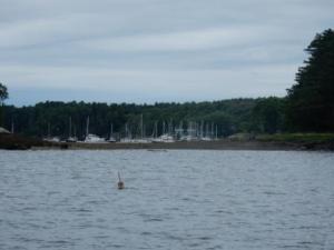 We left The Basin at 8:45 and headed back through the narrow channel and back out into the New Meadows River, passing Cundy Harbor once again. Further south we passed Sebasco Estates on our left, an old-school resort (i.e. the movie Dirty Dancing) that was recommended to us, but didn’t fit into our schedule for the week. Perhaps on our way back we will put it on the itinerary.