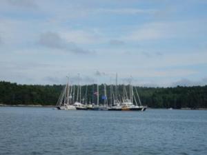 Almost immediately a whole flotilla of mostly sailboats started to arrive one by one and began anchoring in the large pool east of us. Come to find out they were from Eastern Yacht Club in Marblehead and they were having rendezvous with our anchorage as their destination. Over the course of several hours the large flotilla arrived and formed a large circle about 200 yards from us. It was fun to watch them orchestrate the boats so they could do this, and even squeezing in some who arrived much later than most.