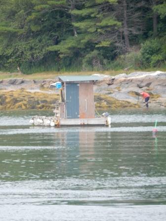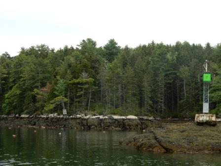 We Left Robinhood shortly after 10:00 so Mark could have a conference call with a client. It was cool (60°) and overcast skies, but it was not raining or foggy. We crossed the Sheepscot River and entered into Ebenecook Harbor, dodging lobster pots and rocks all along the way.