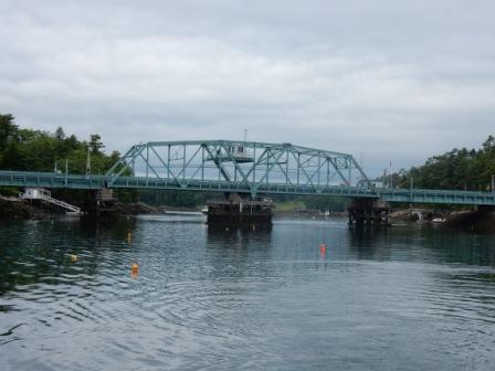 At 10:00 we left the Dolphin Marina and headed to Snow’s Island anchorage; a place that had been recommended to us and one that would shelter us from the wind that was predicted to blow hard in the evening. It was 13 miles from the Dolphin marina and up Quahog Bay, passing Bailey’s Island and the Crib Stone Bridge along the way.