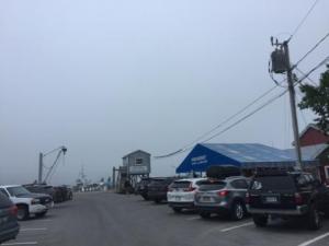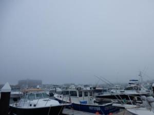 We eventually decided to try the place nearby as we were pretty sure we had eaten there before with Aunt Judy when we were here in 2013. We later confirmed that it was in fact the same place. Funny how life hands you these little coincidences. So we placed a “to-go” order and walked from the marina across the gravel parking lot to pick up our lobster rolls and fried clams, and returned to the boat to eat them. It was delicious and we enjoyed every bite, all the while watching the fog get heavier and heavier. By the time the sun was completely down and darkness was all around us, you could barely see beyond the marina.