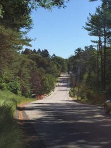 She continued south until she came to Lobster Cove Road and turned up it to find a small but challenging hill. She managed to get to the top without stopping, and there she encountered a deer that had stopped at the edge of the driveway of a house. It was so perfectly still that at first she thought it was a statue. Quickly she took the picture, but before she could get a second one, it took off. What a thrill!