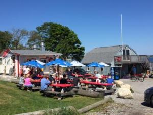 Initially we didn’t venture very far, just across the parking area to Erica’s Seafood and the adjacent lobster shack owned by her dad (Tom), who also runs the lobster boat that supplies her the fresh seafood. Here Mark started talking with the owner about buying fresh lobsters and we ended up getting an education about the difference between hard and soft shell (called “shedders”) lobsters. We learned we could buy fresh live ones for $5.99/lb, – a real deal. The only problem was that we did not have a pot big enough to cook them in on the boat and so we could not buy any from him. This now became our mission; find a pot to cook two lobsters and fit on the small burners on our boat cooktop.