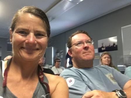 Near the end of the run at the Town Landing Market she encountered a running group from Portland who were marathoners doing their long run; an out-and-back distance totaling 16 miles. They talked briefly and then they continued back to Portland. It was hot and Denise was glad to be done her 4 miles, but was feeling a bit inadequate after meeting this group. She went inside the Town Landing Market and got a coffee and a newspaper and walked back to PYC and took the launch back to the boat.