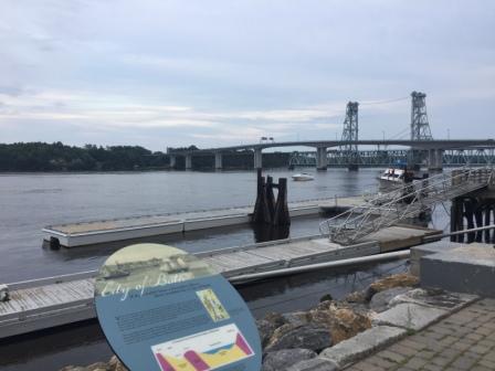 After eating and shopping we headed back to the marina and said goodbye to our friends. Before going back to the boat, we checked into the dockmaster’s office to inquire about a few things. One of them was a tower we could see on land when we were coming up the River. He informed us that it was originally a tower and amusement park with a hotel, but these burned and all that remains is the tower which is currently on private land. We also learned that this marina is the original Brewer’s Marina that started the chain, but that they are no longer affiliated with this now large marina management company.