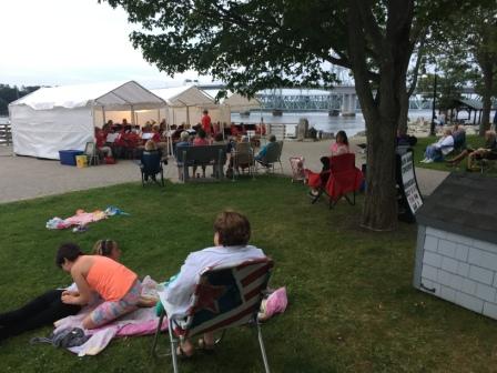 We then walked back to the boat passing the public dock and waterfront park where there was a concert going on; a local high school band playing patriotic tunes. Small town America is so cool! After the park we walked the street along Bath Iron Works and a huge dog park along the way. We passed the IGA Market and debated about stopping but decided there was nothing we really needed to buy.