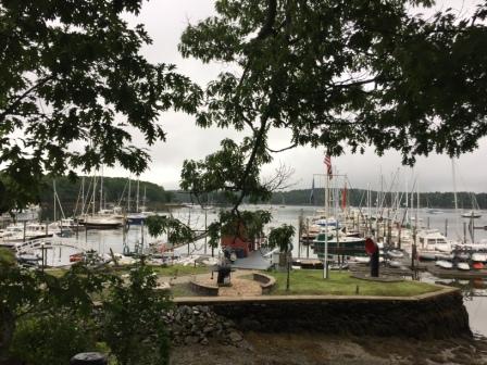 After securing our boat and we were immediately greeted by a man who introduced himself. “Howie” on “Joyful” was from Situate, MA is a friend of John C’s (in Staten Island). He approached us and wanted to know why we didn’t stop as John C had told him to expect us. His boat (a Sabre 42) was on a mooring ball closest to the docks and he recognized our boat name as we were docking. Of course we were impressed and explained to him how Mark’s work schedule had affected our plans, requiring us to go into Boston directly. Shortly thereafter we met his wife, Joy and we talked for a while as they shared recommendations of “must see” places to visit while in Maine. They had to leave as they had company coming, but we agreed to keep in contact and to look them up if we get to Situate on our way home. What a small world this cruising community really is.