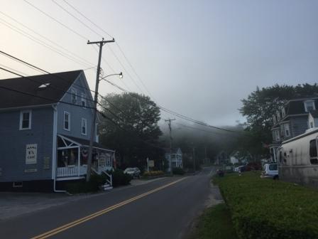 It was a foggy morning when Denise got up early to go for a run along the roads that form the perimeter of Boothbay Harbor. She ran through downtown, and then turned onto Atlantic Avenue on the eastern side, which runs past some antique and art galleries, as well as a few B&Bs and hotels. She also went past Our Lady Queen of Peace Catholic Church and the Fisherman’s Memorial which is across the street and overlooks the harbor.