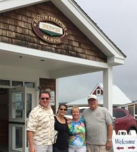 We had been in communication with our Gold Looper friends Jann and Bill Mellman, who were in the area now enjoying travels in their RV. They were headed north and on to Bar Harbor, but were willing to spend some time with us. Plus, they had a car and wanted to go to LL Bean, and so did we. So they came down to the marina and picked us up, and then the four of us went into the town of Freeport – home of LL Bean. It is amazing how this place has grown from a simple store that stayed open 24 hours a day/7 days a week – 365 days a year….to the shopping mecca it now has become. LL Bean alone has 4 large stores (Flagship, Outlet, Outdoor, and Home store), and is surrounded by every other retailer you can think of. There is also now a restaurant owned by Linda Bean and that is where the four of us went for lunch. The food and service was pretty good, but the prices were (naturally) a bit on the touristy side. We still enjoyed it, and especially our company.