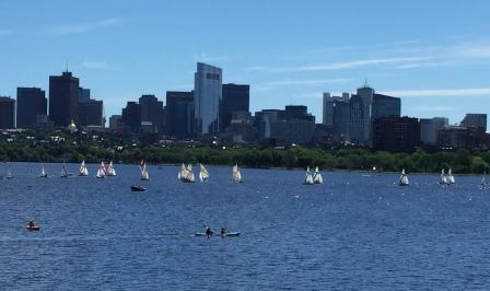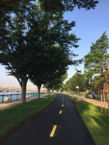 Denise started the day with a 4-mile run down the path near the locks. She discovered that the park and route continued all along the Charles River, past MIT and further then she would run. There was one place along the way where she had to cross an intersection, but with a pedestrian crosswalk and several other runners also waiting, it was not a big deal.