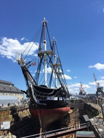 Finally the next trolley came and we got on and finished the last few stops. We got off where we started by the marina, which was also right at the Navy Yard where the USS Constitution was in dry dock for rehabilitation. “Old Ironsides” was open for tours, so we decided to see this magnificent ship that withstood cannon fire and still stands today.