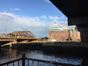 The day was started with a little more office work for the embroidery business, but quickly moved into an adventure. After completing her chores, Denise used the path and stairs to the Charlestown Bridge and walked across the river to the Boston Public Market, about 1 mile from the boat.