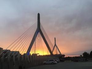 After dinner we explored the park on the other side of the highway next to the Residence Inn. There is a walkway that runs the perimeter of the water around our marina, under the Charlestown Bridge, and along the Charles River. Denise wanted to understand how the path leads to stairs that can take you to the bridge as a possible walking/running route. To our surprise, on the other side of the Charlestown Bridge there is an entire lock system that allows boaters to traverse from the Boston Harbor to the Charles River. From our marina we had seen boaters stop just before going under the US1 Bridge but never knew why they were stopping; now we know they were waiting on the locks.