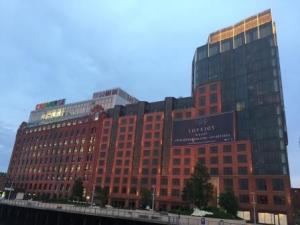 We cruised through the downtown area and made a left turn up the Charles River to Constitution Marina. We were assigned the end spot on the transient dock where Mark did an awesome job of backing the boat in front of a large power boat. The dockhands were there to help guide us in, tie our lines and hook up our power. We were very grateful for their assistance as we were quite tired. We had traveled 165 nautical miles; our second longest day on the water since we acquired our Island Office.