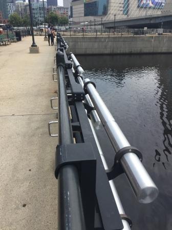 We left the marina walking under the bridge and towards the locks but took a pedestrian path that passes along the back of the locks that we didn’t even know was there. This way negates the need to use the stairs and cross the river via the bridge. It was a great discovery as it saves time and is safer. But what is also cool is there is a set of “chimes” (called the “Charlestown Bells”) that you can ring along the fence of the walkway. I am sure most people walk this path every day and don’t even know it exists as it looks like it is part of the railing. However, when you walk by if you push the levers the chimes are struck making a sound like hand bells.
