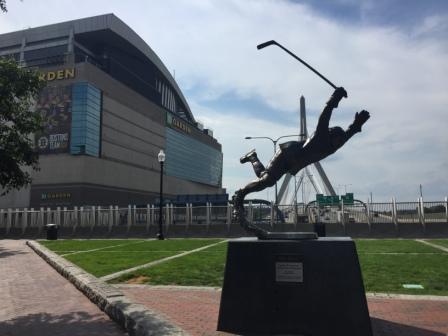 It was really quite hot outside so she stayed inside walking back through the shopping complex and up through Lord & Taylor instead of on the street. Eventually she returned to Copley Square and walked around the farmers market before heading back down to the “T” station. From there it was a quick trip to the North station near the TD Garden where she passed the Bobby Orr statue.