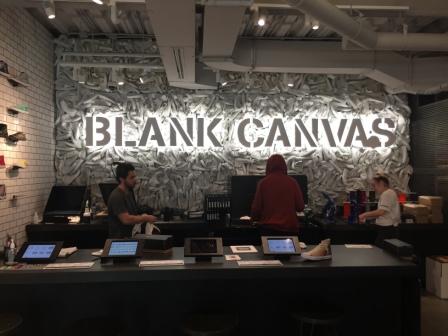 Their selection of apparel was very limited to a handful of t-shirts, but their shoe selection was extensive. But the really cool thing was they offered the ability to print any image on certain model shoes, and they will do it while you wait. The also offer the opportunity for you to custom make your own shoes from a large selection of fabrics, patterns and styles. These are cut in the store, but shipped off for assembly elsewhere, and then they are shipped to you some 4 or 6 weeks later. It was fascinating to learn about all this from Converse. Since it has been years since I have worn their shoes, I had no knowledge of even what styles they offer today, so it was a huge learning experience.