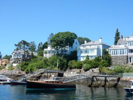 Once back at the boat, we noticed the fog had lifted and we made plans to leave. Of course some lobsterman placed a pot right near where we would have otherwise maneuvered! We wanted to see more of the eastern shore of the harbor, so we cruised around for about 15 minutes, checking out the other yacht clubs and mansions.