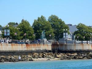 As we were not staying in Gloucester, we did not go to the inner harbor located on our right (starboard), but rather headed towards the waterfront walkway. Here is where the Beauport hotel is a key landmark to the east, and the famous Gloucester Lobsterman Memorial was dead ahead of us.