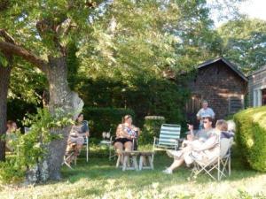 After our walk we determined it would be better if the dinghy was on the other side of the inlet near the yacht club docks. This would make it easier to get back to the mooring in the dark, and we wouldn’t have so far to go. Feeling adventurous Mark moved the dinghy by himself through the inlet, and Denise & Liz took the car down the hill to meet him. Liz then gave us a mini-tour of Annisquam and then we went back to the house for happy hour.