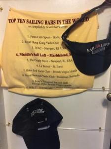 In the evening we took the dinghy back to shore for dinner at Maddie’s Sail Loft as suggested. When we walked up the stairs and entered the place (via the bar) we saw their t-shirts for purchase. On the back of the shirt is a list of the “Top 10 Sailing Bars in the World”, of which Maddie’s was one. The funny part was we had been to 4 others of these on the list. I am not sure what that says about us!