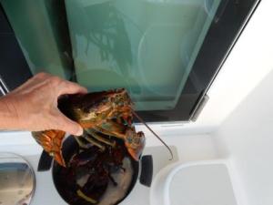 We then made our way back to the lobster pound where we met with the wholesaler who agreed to sell us two freshly caught 1.25 lb soft-shelled “bugs” – for a total cost of $13. We got back in our dingy, put them in our pot (full of seawater) until it was time for dinner. Eventually, we put them on the stove and had a terrific dinner of the tastiest lobster we have eaten to date. It was a perfect ending to a perfect day at this very cool anchorage!