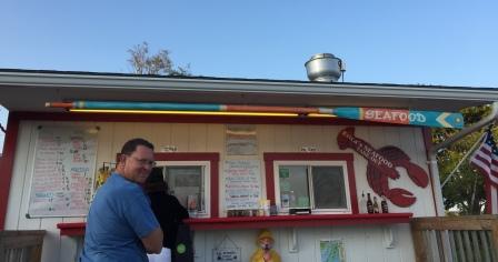 Late in the afternoon Mark had a conference call with a client that ran very late. So dinner was going to be late and we decided to go to Erica’s Seafood Shack and get a few lobster rolls for dinner to take back to the boat. (Note: see our post from 7/9 for an explanation of Erica’s and the whole Dolphin Marina complex). These were good, but certainly not the best ones we have had during our time in Maine.