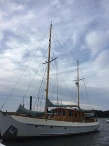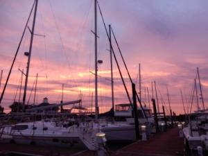 During the day, the sailboat “Tradewinds” pulled into our old slip. This beautiful boat was clearly in need of the longer dock we had been on, and even then it stuck out by at least 4’ from the end of the pier.